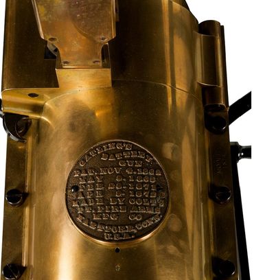 The gun features an oscillator that is marked "Watervliet Arsenal". It is my opinion, from studying photos of original oscillators, that this is pure fantasy. The oscillator was considered as a part of the gun. Its parts are listed on the parts list for the gun. Since it was a part of the gun, Colt produced the oscillators, not a government arsenal. Also the "lock plug handle" on the back of the gun is not the proper pattern for the early guns (1871-1879) but is actually the pattern used on the guns made in the 1890s. At the time this gun was manufactured (1987) my father did not have access to an original early style handle to copy, so he used the later style handle on all of his replicas. See the photo below of the proper early style lock plug handle.