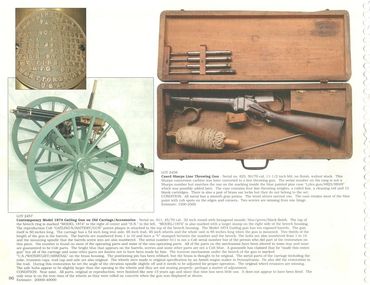 Photos (below) of Anderson Guncraft's replica Model 1874 "musket length" Gatling gun, serial number 011 on a carriage from the auction listing. Included is a photo of an original Camel gun showing the proper lock plug handle for the 1871-1879 Gatlings.